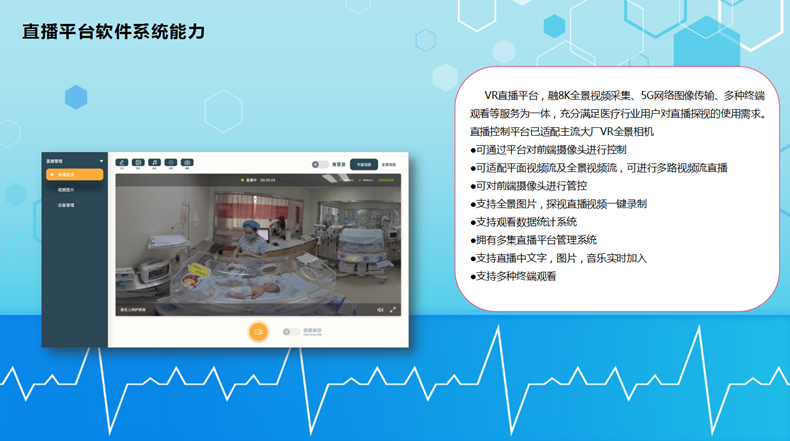 可实现 探视者可在VR头显中或手机上自由切换全景摄像头的画面,既可以体验全景真实场景也可以观看到病患的细致特写。